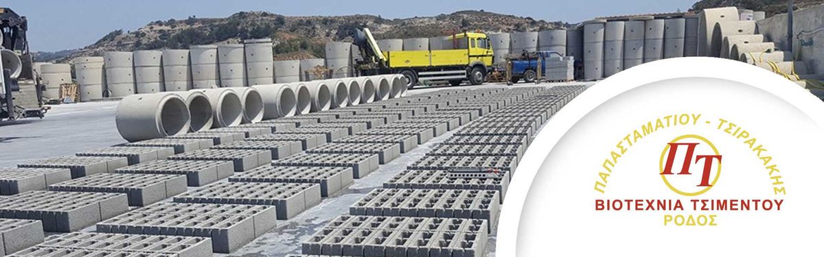 Χάρη στις σύγχρονες εγκαταστάσεις και στον άρτιο εξοπλισμό τελευταίας τεχνολογίας, η εταιρεία Παπασταματίου - Τσιρακάκης, στη Ρόδο, παράγει τσιμεντοσωλήνες, καμινάδες, φρεάτια, κράσπεδα, κισσηρόλιθους και άλλα οικοδομικά υλικά, που διατίθενται τόσο σε επαγγελματίες όσο και σε ιδιώτες!